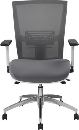 Irodai szék, karfás, hamuszürke szövet, feszített hálós háttámla, fehér váz, alumínium lábkereszt, MAYAH "Radar III"